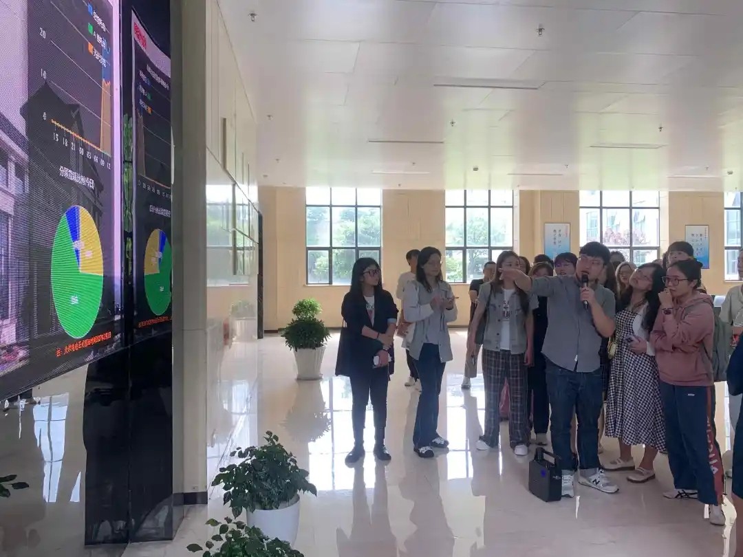 師生一行在鄭勇梁的帶領(lǐng)下先后參觀了源牌科技零能耗樓、低碳科技成果展示廳、黨建基地等地,對源牌科技核心產(chǎn)品(綜合能源設(shè)備:高效蓄冰盤管/水蓄能裝置/電極鍋爐、智能儀表:電磁流量計/熱量表/水表、變風量末端裝置)及一體化解決方案有了一定了解,對“如何高效蓄能降碳”有了具象化概念。