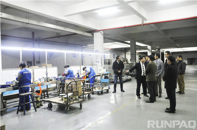 在源牌“綠色工坊”——產(chǎn)品生產(chǎn)基地,張勁松領(lǐng)著來賓先后參觀了變風量VAV-TMN、溫控器生產(chǎn)車間、標定車間、流量計、熱量表等生產(chǎn)車間,高效、整潔、有序的生產(chǎn)線給來賓一行留下了深刻的印象,源牌制作讓人放心、源牌質(zhì)造讓人安心、源牌智造讓人動心。