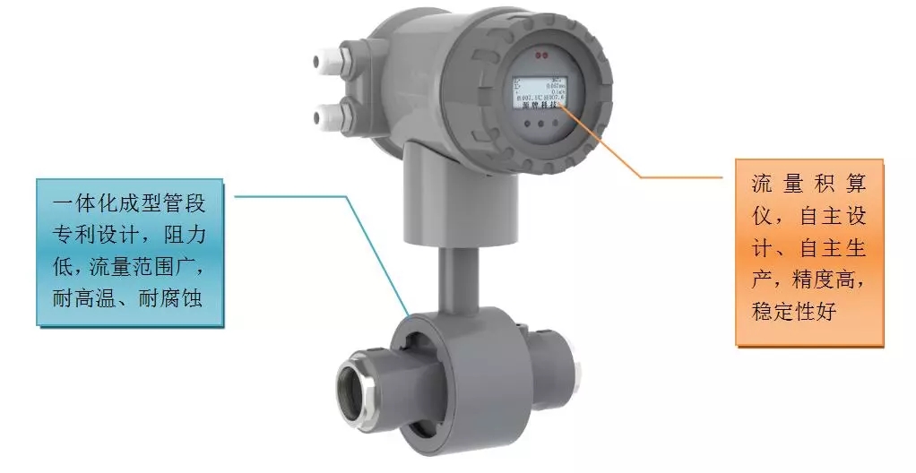 一體化成型流量測量管段——體積?。ǔR?guī)的1/3),重量輕(常規(guī)的1/7),無阻力部件、壓損小,防腐耐高溫(120℃);