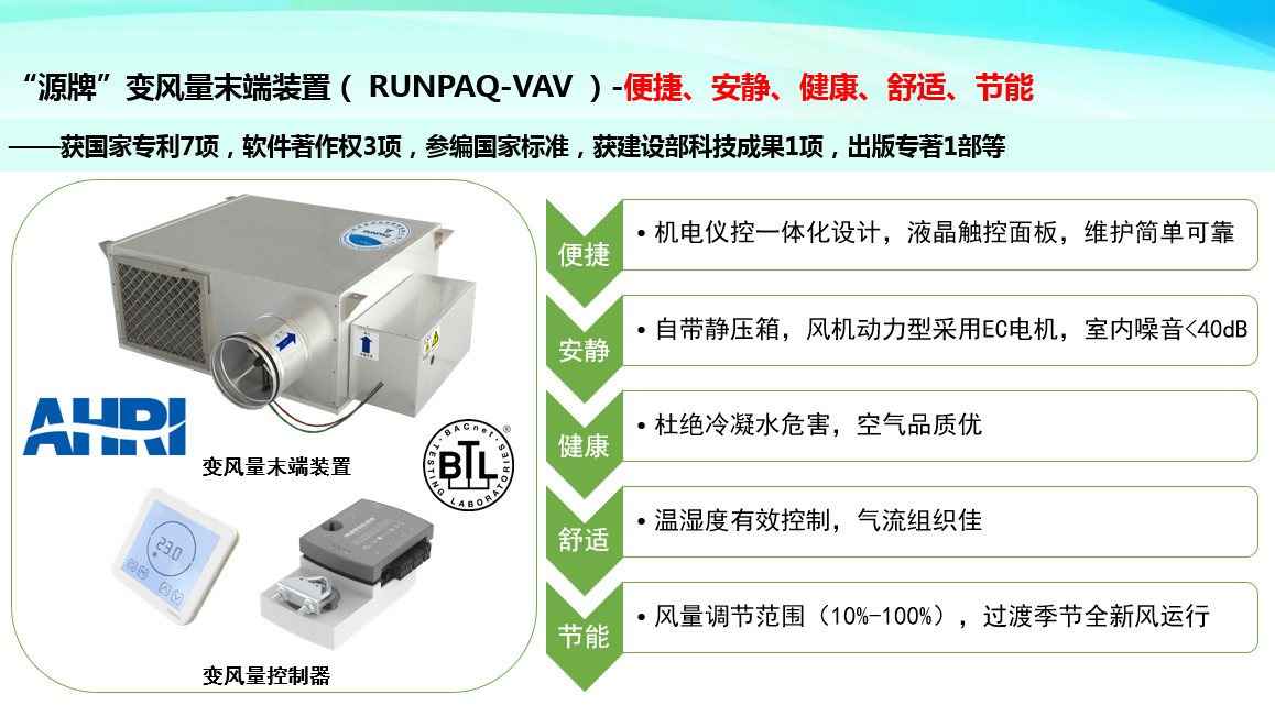 項(xiàng)目全面采用源牌裝配第三代VAV控制器的變風(fēng)量末端裝置及觸摸型溫控器,力求為大樓提供健康、舒適、節(jié)能的室內(nèi)環(huán)境。